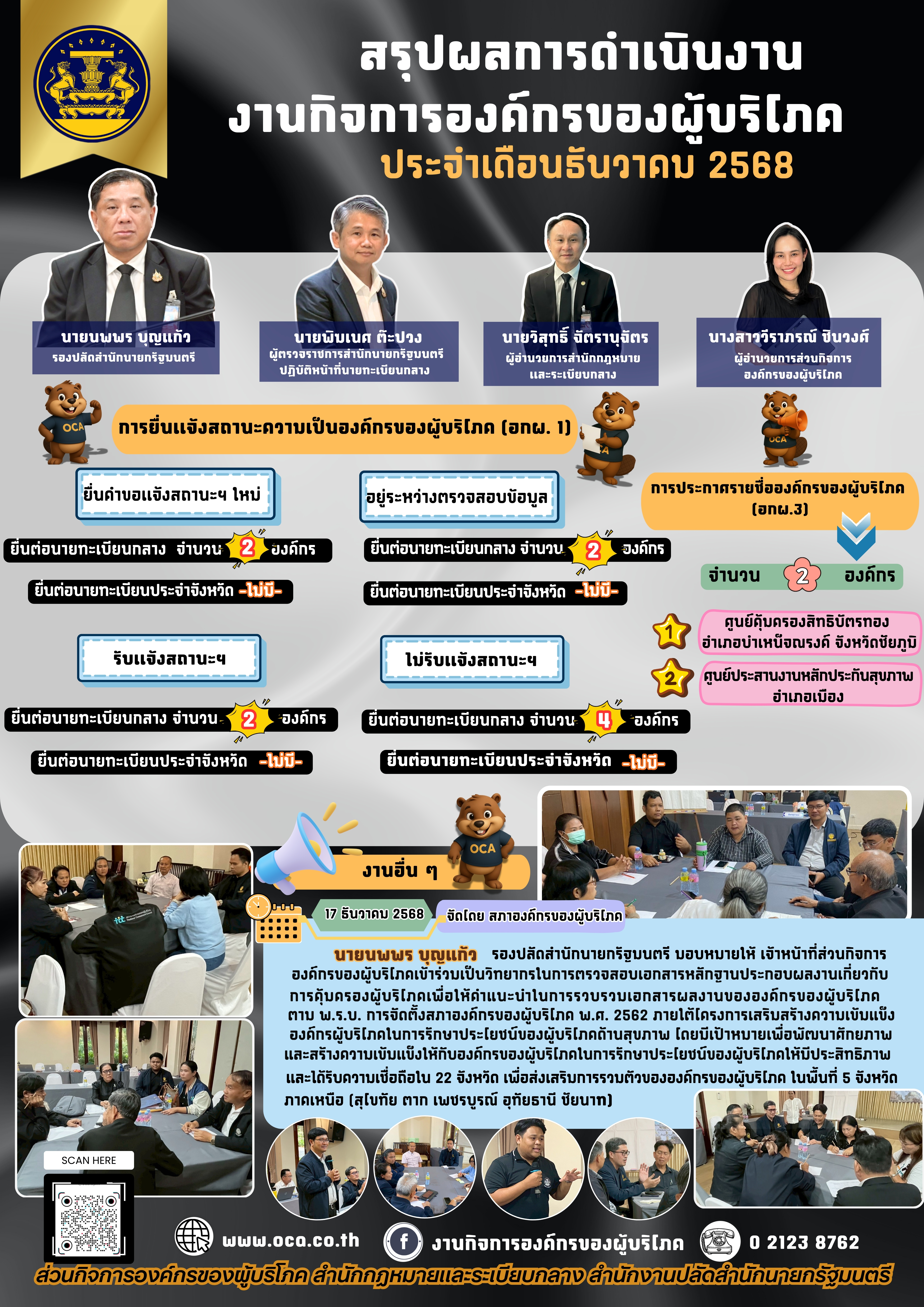สรุปผลการดำเนินงานกิจการองค์กรของผู้บริโภค ประจำเดือนธันวาคม 2568