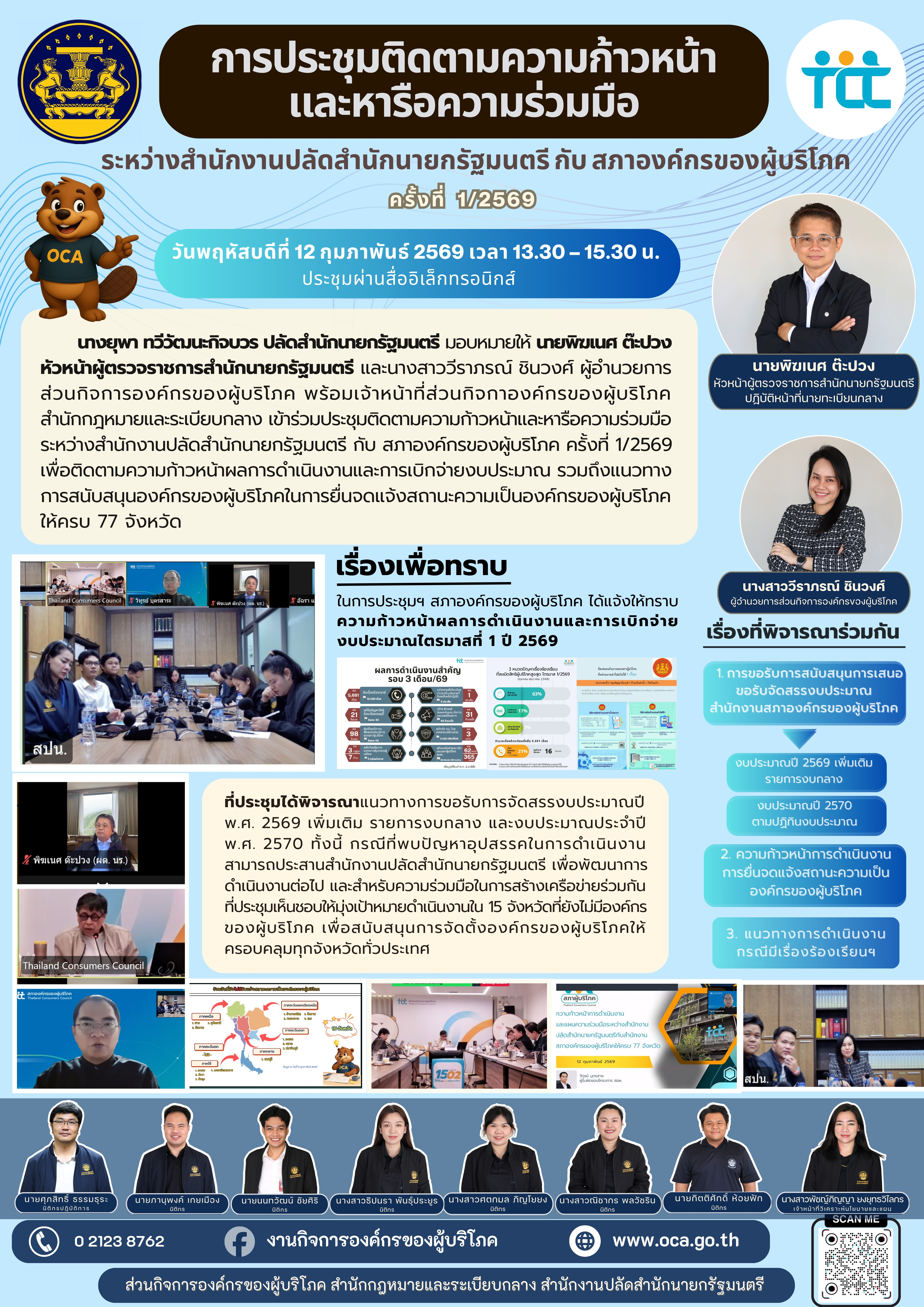 การประชุมติดตามความก้าวหน้าและหารือความร่วมมือระหว่างสำนักงานปลัดสำนักนายกรัฐมนตรีและสภาองค์กรของผู้บริโภค ครั้งที่ 1/2569